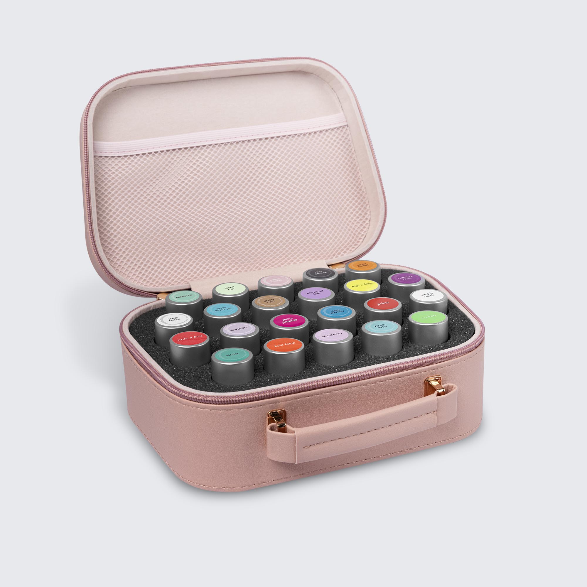 Small foam insert holds up to 22 polish bottles.